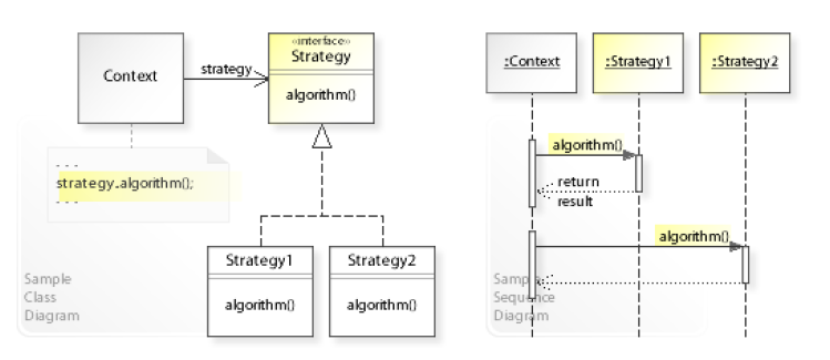 Context내에 알고리즘을 switch나 if-else문으로 작성한다면 나중에 독립적으로 수정하기가 어렵다. 또한, 클래스가 복잡해지고 재사용성이 어려워진다. 알고리즘을 개발기간동안 확장되어지고 최적화되며 대체되기도 하기 때문에 결합을 약하게 해야만 한다.