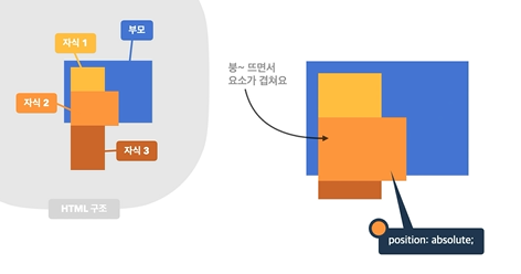 위치상 부모요소를 기반으로 배치를 이동하면서 기존에 있는 형제요소간의 상관관계가 끊어진다.
