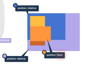 상위 요소에 relative가 존재하더라도 부모(바로 위)요소를 기준으로 배치된다.