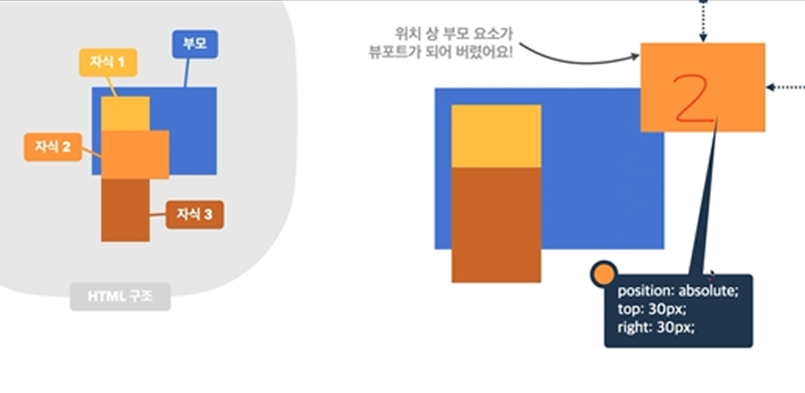 top, right를 추가했을 때 부모요소로부터 이동해야 할거 같지만 뷰포트 기준으로 해버린다.