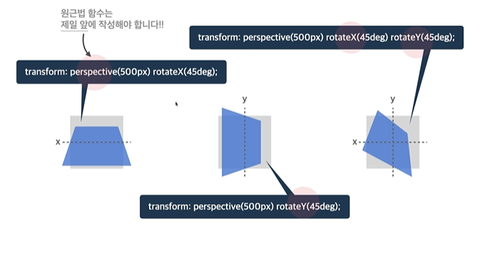- rotateX, rotateY, rotateY가 3D함수이다.