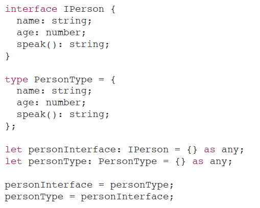 구조가 같으면, 같은 타입이다. IPerson에다가 PersonType변수를 대입하더라도 문제가 전혀 없다.