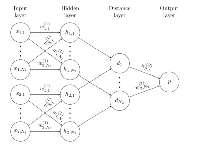 $$ p = \sigma (\sum_{j} \alpha_{j} | h_{1,L-1}^{(j)} - h_{2,L-1}^{(j)}| $$