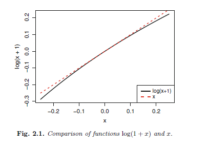 $$ r_{t} = \log ( 1 + R_{t} ) = \log \frac {P_{t}} {P_{t-1}} = p_{t} - p_{t-1} $$